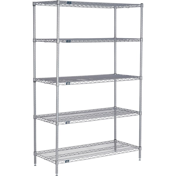 Nexel 5 Shelf, Nexelate Silver Epoxy Wire Shelving Unit, Starter, 48"W x 14"D x 86"H