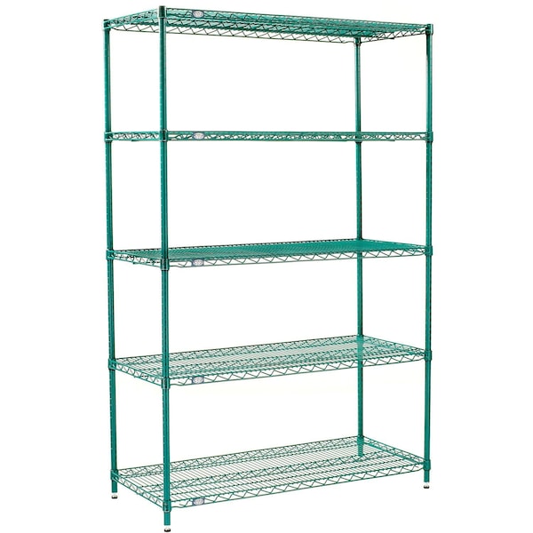 Nexel 5 Shelf, Poly-Green Wire Shelving Unit, Starter, 42"W x 14"D x 86"H