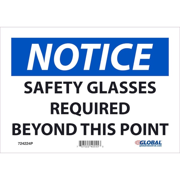 Notice Safety Glasses Required, 7x10, Pressure Sensitive Vinyl