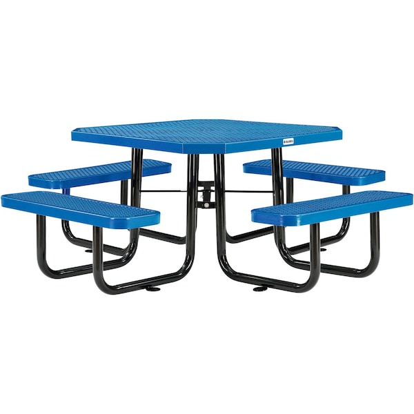 Octagonal Picnic Table, Blue, Expanded Metal, 46 in