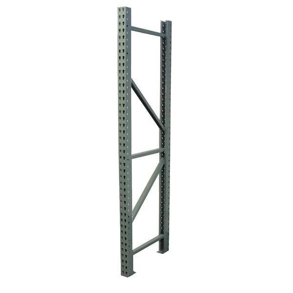 Robust 13-gauge frame. Punched on 2in centers for easy beam adjustment. Interchangeable with various other beams from Interlake to USP. The Global Industrial™ Pallet Rack Upright Frame is an upstanding solution that supports pallet rack beams. This welded upright frame is made with 13-gauge steel and a long lasting baked-on enamel finish. When selecting an upright beam, it is recommended to determine the total weight of all pallets for each pair of upright frames. Add the height of all pallet loads, beam height, allowing 4in to 8in clearance between the top of the load and the bottom of the beam above. The top beam should be a minimum of 6in less than the maximum height of your forklift reach. Frame depth is determined by the length of the pallet. The pallet should overhang the frame by 3in front and back. Interchangeable with Interlake, Wireway/Husky, Unarco, Steel King, USP, Speed Rack and Invincible.. Capacity based on 36in beam shelf spacing. If seismic conditions apply, verification of capacities must be confirmed with a seismic engineer. Global Industrial is not responsible for engineering, installation and/or application of this material. Global Industrial is not responsible for permits. It is the full responsibility of the customer to check the contents and quantities. The lbs capacity ratings provided are for reference only. These ratings apply to static non-seismic conditions only.