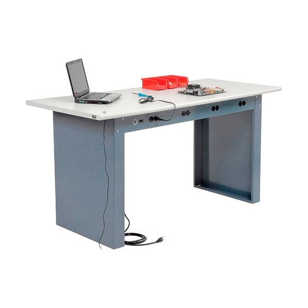 Panel Leg Workbench w/ESD Safety Edge Top & Power Apron, 72inW x 30inD, Gray