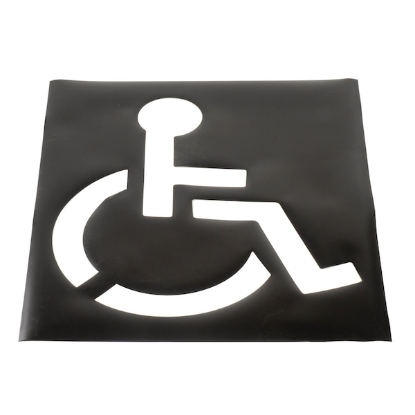 37x 43 template for Handicapped Parking heavy duty stencil. Black vinyl construction. Stencil is reusable. Use with spray paint on pavement. Meets ADA requirements.