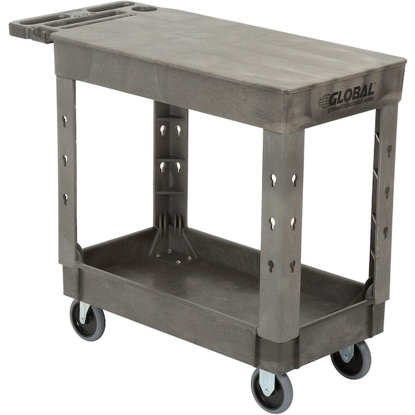 This high quality cart is virtually maintenance free and perfect for industrial, commercial, medical, or food service applications. Easy-to-clean structural plastic cart won't rust, dent, peel, or chip. Cart features smooth flat top shelf for worksurface or easy loading/unloading of oversized cargo and a 2-3/4 bottom, leak-proof trays with 2 swivel and 2 rigid non-marking 5 rubber casters. Comfort grip push handle for effortless steering.