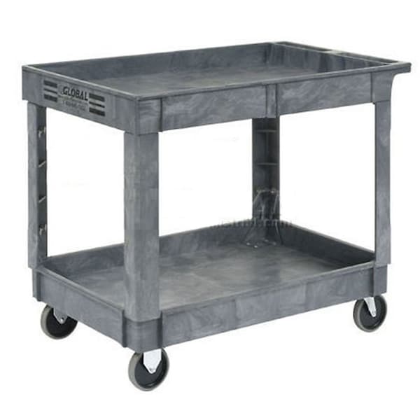 Rugged structural plastic constructionWon't rust, dent, peel or chipLeak-proof top tray shelf 3D tray shelves Push handle Easy-to-clean 2 non-marking swivel casters, 2 fixed casters Easy assembly