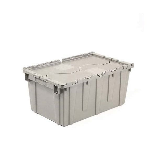 Plastic Attached Lid Shipping & Storage Container, 25-1/4x16-1/4x13-3/4, Gray