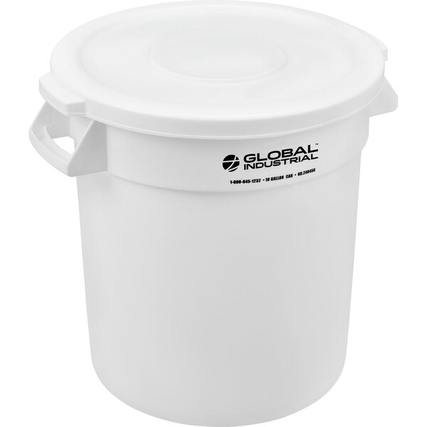Made of seamless leak-proof polyethylene plastic resin. Durable construction ensures it wonftt chip, crack, peel, or corrode. Empty can is designed to nest for added storage. Dispose and remove your waste easily with the Global Industrial Plastic Trash Can with Lid. Equipped with molded-in handles for a sturdy grip and added comfortespecially when the can is full, this receptible is ideal for all janitorial and maintenance needs. Its durable plastic construction is easy to clean and wonftt corrode, while the rolled formed top rim is reinforced for added strength and longevity. Cans of a similar size will nest when empty to save facilities valuable storage space and the lid offers protection from spills, foul odors, and keeps pests, such as rats and racoons, at bay. NSF approved. 1 Year Limited Warranty.