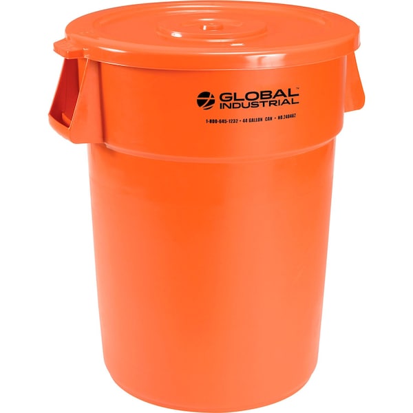 Plastic Trash Can with Lid, 44 Gallon Bright Orange
