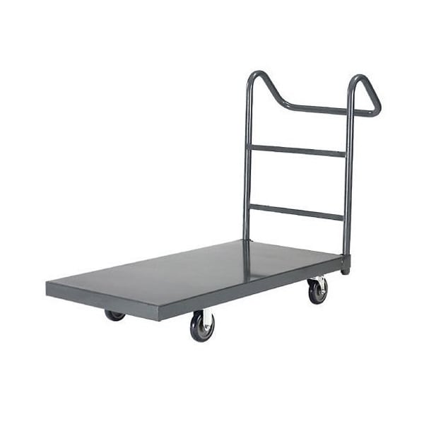 All welded heavy duty, 14-gauge steel deck, reinforced with internal longitudinal stiffening members for extra strength. Non-marring integral corner bumpers protect walls. Features a removable Ergo pipe Handle, which helps reduce strain on the back, wrists and arms. Bolt-on casters are double-ball race, two swivel and two rigid. Durable baked enamel finish.