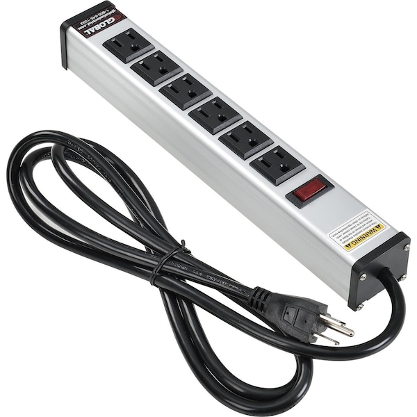 Power Strip, SJT, 5-15R, 6 ft., Silver