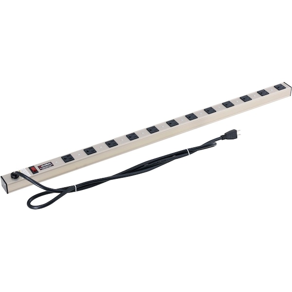 Eliminate the hassle of crisscrossed cables all over the floor. The Global Industrial™ 35in Aluminum Power Strip With Surge Protection keeps your cords organized within one reliable surge-protected outlet center for maximum convenience. Encased in strong aluminum housing, this slim and sturdy power strip accepts up to 12 plugs making it perfect for workshops, offices and desktop settings. The rocker switch is easy to spot, illuminating red when the power is up and running for all plugged in devices. Snap and slide mounting clips are included to accommodate wall surface installation, along with a 6 ft. cord for optimal reach. Easy to use and quick to install, this power strip will get you back to the task at hand with all your powered devices ready to go. ETL/cETL Listed. 1 Year Limited Warranty.