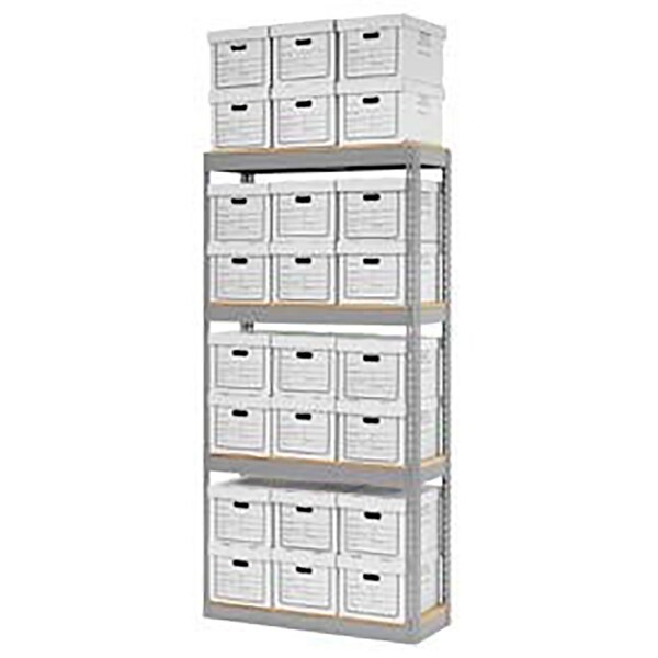 Record Storage Open With Boxes 42W x 15D x 84H, Gray
