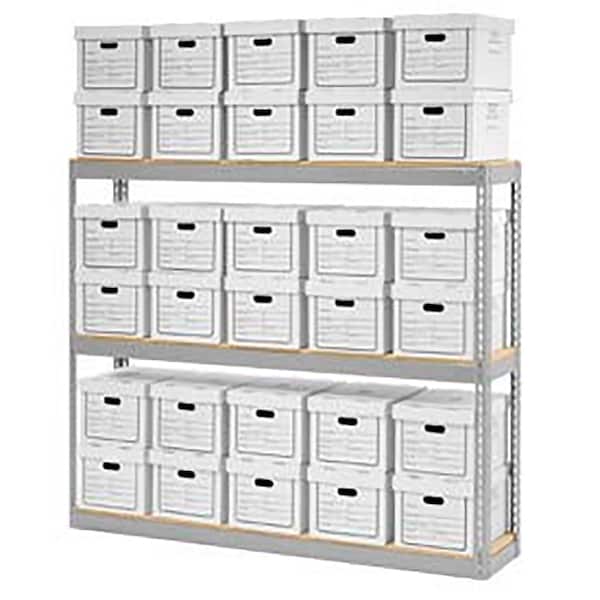 Record Storage Open With Boxes 72W x 15D x 60H, Gray