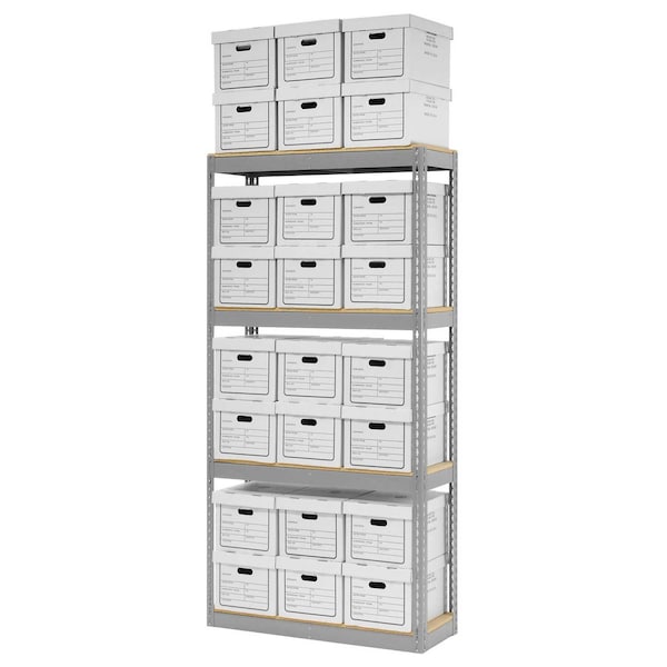 Record Storage Rack With 24 Boxes, 42W x 15D x 84H, Gray