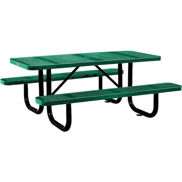 Rectangle Picnic Table, Green, Perforated Metal, 6 ft L