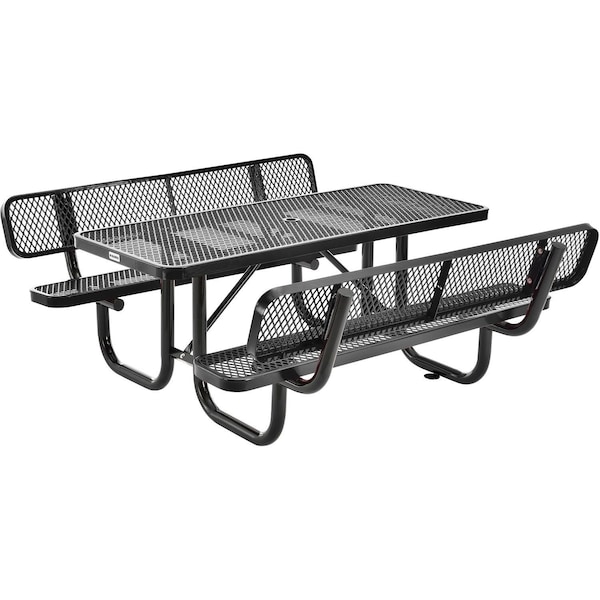 Rectangle Picnic Table w/ Backrests, Black, Expanded Metal, 6 ft L