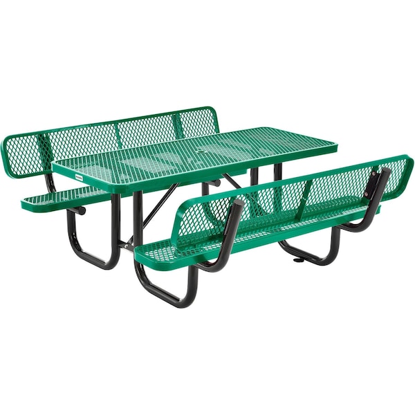 Rectangle Picnic Table w/ Backrests, Green, Expanded Metal, 4 ft L