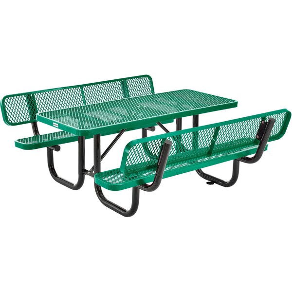 Rectangle Picnic Table w/ Backrests, Green, Expanded Metal, 6 ft L