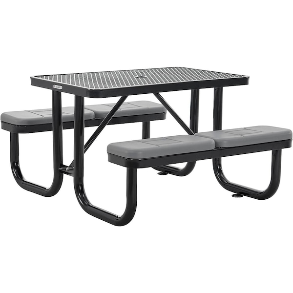 Rectangle Picnic Table W/ Seat Cushions, Black, Expanded Metal, 4 ft L