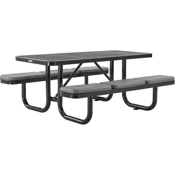 Rectangle Picnic Table W/ Seat Cushions, Black, Expanded Metal, 6 ft L