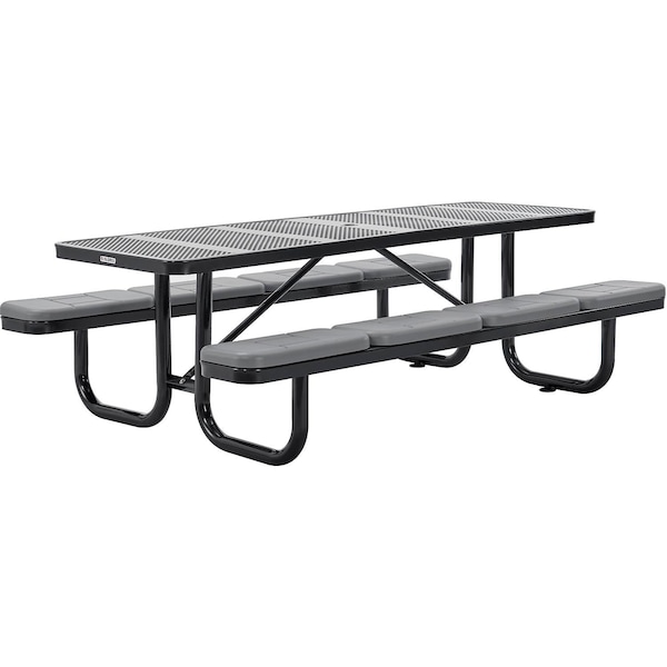 Rectangle Picnic Table W/ Seat Cushions, Black, Perforated Metal, 8 ft L