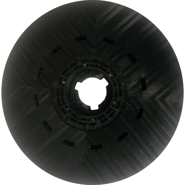 Pad Driver holds floor pad in place for a variety of cleaning needs including scrubbing and buffing. Hook and loop-type surface grips onto the floor pad, while center key snaps in to keep pad in place secure tightly to avoid center key from scratching floor surface. For use with 20in floor machines Global models 641252 and 641253.