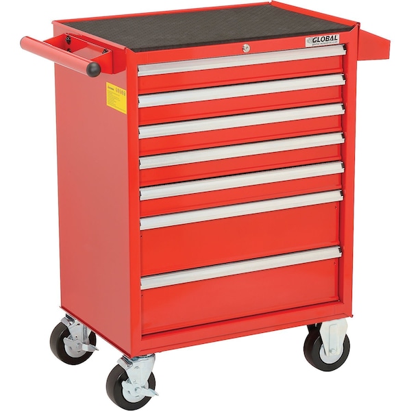 Roller Cabinet, 7 Drawer, Red, Steel, 18 in D x 38 in H