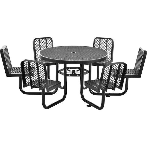 Round Carousel Picnic Table, Black, Expanded Metal, 6 Seats, 46 in