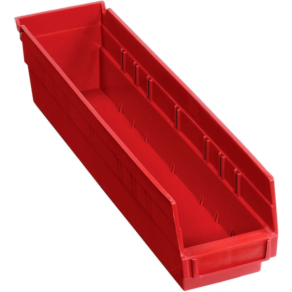 Shelf Storage Bin, Polypropylene, Red, 4 in H, 4-1/8 in W
