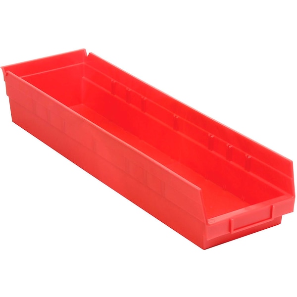 Plastic Shelf Storage Bin - Nestable 6-5/8inW x 23-5/8in D x 4inH Red.