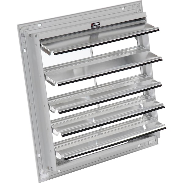The shutter features gravity close louvers to direct airflow. It is made with aluminum louvers and steel frame. Weather stripping provides tighter seal.