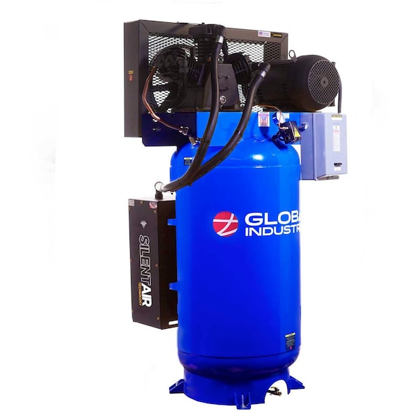 Silent Two Stage Piston Air Compressor, 7.5 HP, 80 Gal., 1 Phase, 230V