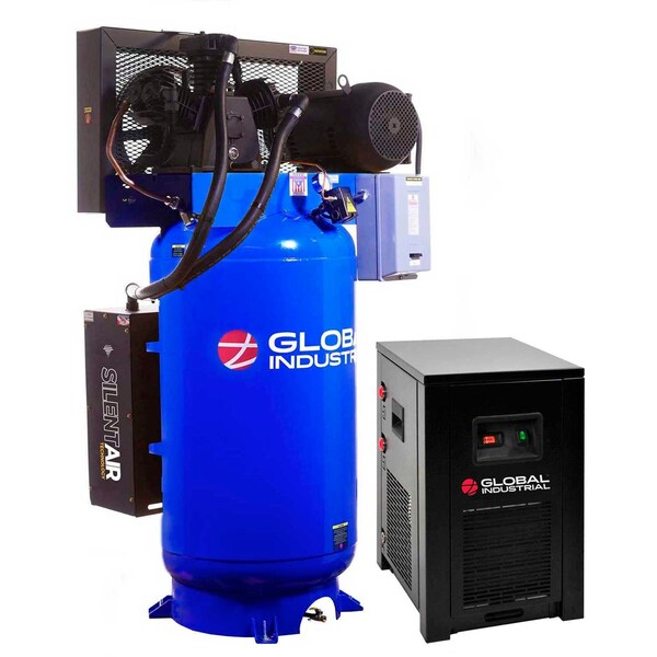 Silent Two Stage Piston Air Compressor w/Dryer, 7.5 HP, 80 Gal, 1 Phase, 230V