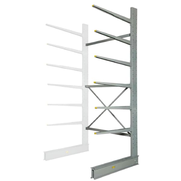 Bring sturdy Cantilever Racking to your storage warehouse with the Global Industrial. Single Sided Cantilever Rack Add-On. This heavy-duty rack is designed to support large loads of lumber, pipes, and other dense materials. Each heavy gauge 24" arm supports 1,200 lbs. of lengthy materials in dividable stacks. The single sided design allows back-to-back positioning with another compatible rack. Includes 4 straight arms.