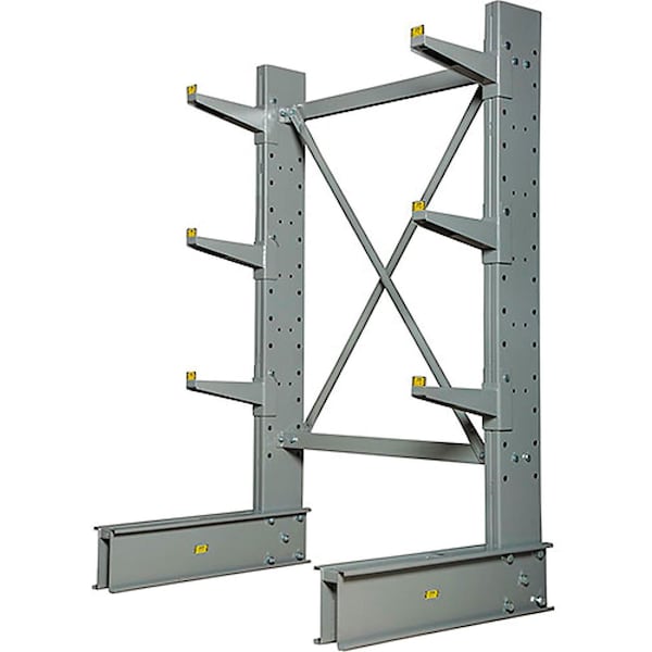 Bring sturdy Cantilever Racking to your storage warehouse with the Global Industrial Single Sided Cantilever Rack Starter. This heavy-duty rack is designed to support large loads of lumber, pipes, and other dense materials. Each heavy gauge 24" arm supports 1,200 lbs. of lengthy materials in dividable stacks. The single sided design allows back-to-back positioning with another compatible rack. Includes 8 straight arms with 2" lip to retain supplies.