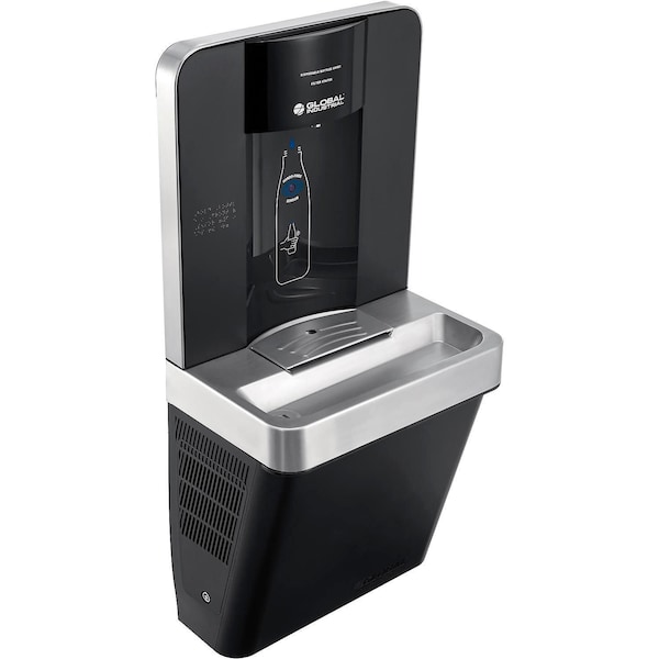 Provide fresh, filtered, and chilled hydration with the indoor-rated, wall-mounted Global Industrial Refrigerated Water Bottle Refilling Station. Its touchless, sensor-activated bottle filling station has a high 1 gal/min fill-rate that runs for 20-sec when activated to conserve water. This is a refrigerated unit with an adjustable thermostat that makes it ideal for schools, offices, breakrooms, gyms, and spas. The included 3,600-gallon capacity PFAS and microplastic water filter meets all your filtration requirements—total PFAS filtration (PFOA+PFOS, PFNA, PFHxS & PFHpA reduction) along with NSF/ANSI 42, 53, & 401 compliance. Check local codes for installation, electrical, plumbing & drainage standards and any restrictions.