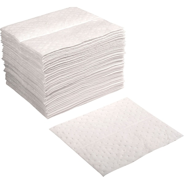 Sorbent Pad, Oil, 15 in x 18 in, White, Polypropylene, 100 PK