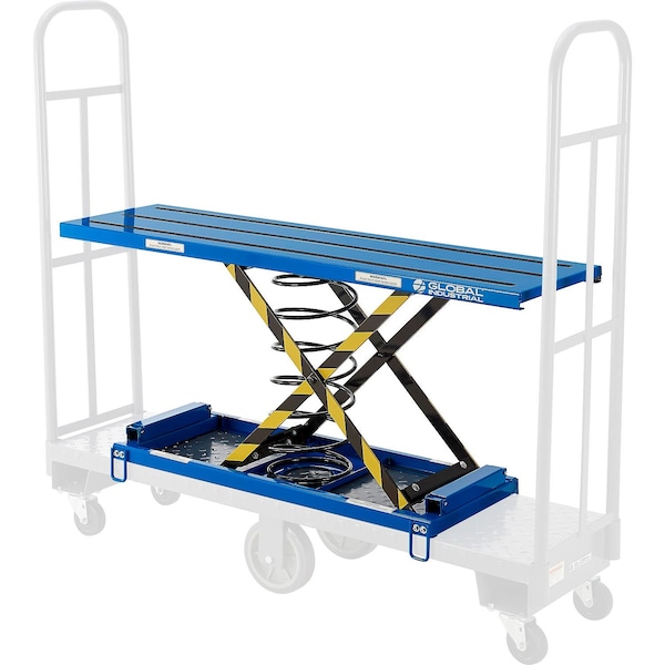 Automatic height-adjustment platform for easy loading and unloading. Ergonomically designed to lower heavy loads to safe working heights. 770 lb Operational capacity. Need something ergonomic and convenient for lowering and raising heavy loads in the warehouse? The Global Industrial™ Spring Loaded Self-Leveler for U-Boats effectively reduces bending and reaching in the stock picking process, saving energy and time from laborious work. The key to this versatile self-leveler, is its heavy-duty spring which compressesand expands on its own, allowing for automatic weight adjustment of whatever you place on it, from multiple corrugated boxes to bulky product loads and heavy tote boxes. This self-leveler is ideal for making light work of moving heavy products in warehouses, supermarkets, retail stores, and any general workspace that depends on a streamlined flow of inventory. Easy-to-install ratchet straps included at each corner of the unit help secure it to a u-boat platform truck sold separately. Constructed of robust, heavy-duty steel material for long-lasting durability. Compressed Height: 7-11/16in 28in. Includes non-skid tape to hold packages in place.