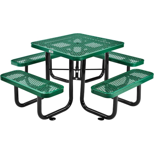 Square Picnic Table, Green, Expanded Metal, 36 in