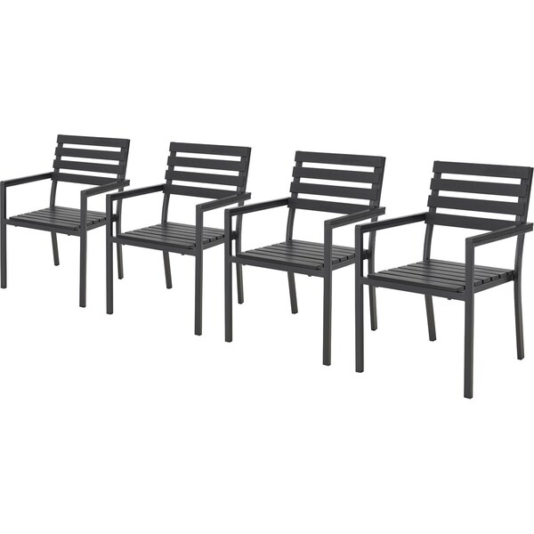 Stackable Outdoor Dining Arm Chair, Black, 4PK