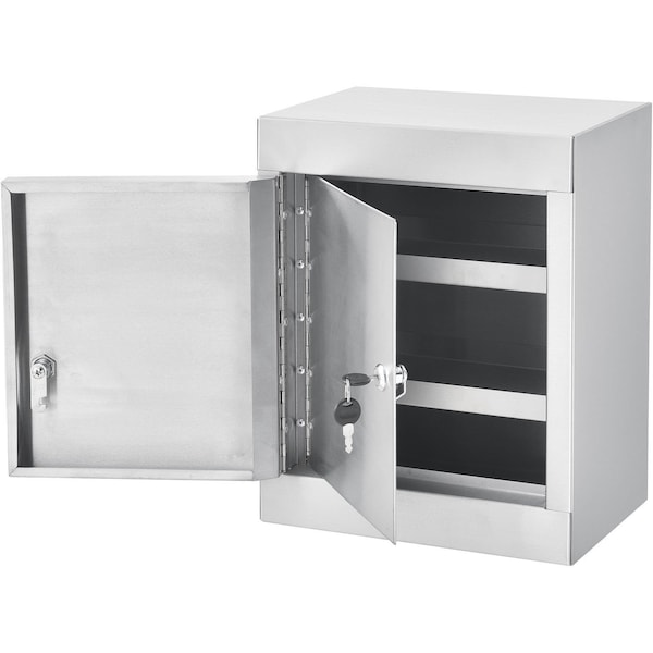 Ideal for use in doctor's offices, patient rooms, hospitals, laboratories and more. Constructed of heavy duty stainless steel. Full-length piano hinged door with double heavy gauge cam lock to ensure content security. Locks are keyed separately with two keys per lock included. One adjustable and removable steel shelf. Pre-drilled mounting holes in the back with mounting hardware included. Ships fully assembled for quick and easy installation. Overall measures 12W x 8D x 15H.
