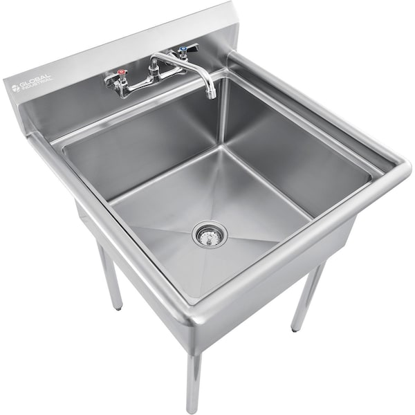 The ideal washing companion for a variety of jobsites and workstations, whether you need a reliable station for washing tools or an industrial sink for cleaning hands after a hard day's work. The deep basin allows elbow-deep scrubbing while keeping splashes within four walls of stainless steel. Perfect for any commercial, educational, or industrial working space where tools need to be cleaned frequently. High backsplash design protects walls from water residue and damage. One-Compartment Sink features an 18 gauge stainless steel body with a 10 backsplash and 12 bowl depth. Galvanized legs with adjustable impact resistant plastic feet. Sink measures 29W x 29D x 42H. Manual faucet with lever handles. Easy assembly. NSF Listed.