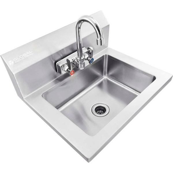 The ideal washing companion for a variety of jobsites and workstations, whether you need a reliable station for washing tools or an industrial sink for cleaning hands after a hard day's work. The deep basin allows elbow-deep scrubbing while keeping splashes within four walls of stainless steel. Perfect for any commercial, educational, or industrial working space where tools need to be cleaned frequently. Constructed of welded 16 gauge, 304 stainless steel for maximum corrosion resistance. 14W x 10D and 5D Basin bowl. Features gooseneck faucet, back-splash and basket type drain. Faucet mount on 4 centers; 1/2 hot and cold supply. Wall mounting bracket and fasteners included. NSF Listed.