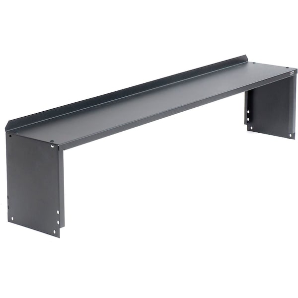 This riser adds space to any workbench. This steel riser comes with powder coat finish. The 2in high backstop prevents items from falling. There are mounting holes to allow easy work bench installation.