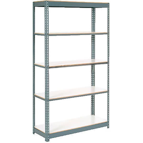Rugged, reliable steel shelving features 1/2 thick white melamine and particleboard shelf decking for a strong, smooth and easy-maintenance surface. Sturdy 14 gauge steel frame uprights and single riveted, extra-large crossbeams provide maximum rigidity and shelf capacity. Shelves adjust at 1-1/2 increments. Fast, tool free assembly. Long lasting baked enamel finish.