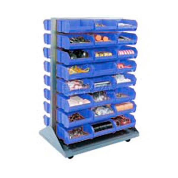 Organize, transport and store parts, components and hardware withmaximum efficiency. Heavy-duty 16-gauge steel louvered bin rack provides easy removable or polypropylene bins. Double Sided Carts with handle allows you to move parts and hardware to different work sites on 4 swivel 3in rubber wheel casters. 500-lb.capacity, gray enamel finish. Assembly is fast and easy.