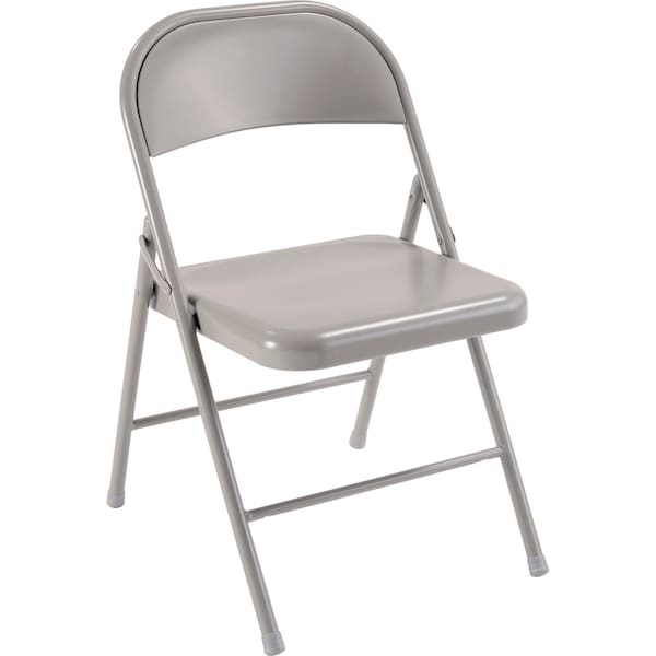 Durable 19 gauge steel chair features a heavy-duty 7/8 tubular steel frame with 2 welded leg braces to keep chair rigid and aligned. The back and seat are made of solid steel and all surfaces are finished in a highly durable Opti-Bond powder coat finish. Contoured back for comfort. Safety hinges eliminate pinch points and retain their alignment for years of reliable folding.