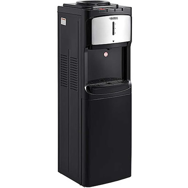 Ideal for tight spaces in offices, schools, and other indoor facilities. Designed to accept 3 or 5-gallon water bottles not included, this water dispenser is lean enough to sit near any countertop in any breakroom, conference room, or other location where a convenient water source is needed. Water can be loaded from the top, making it quick and easy to install and refill. Choose between hot, cold, and room temperature water for beverages such as tea, coffee, or cold drinks. LED indicator lights display when the unit is powered on, as well as when it is cooling or heating water. Classic black finish complements any industrial or commercial setting. Energy Star rated.