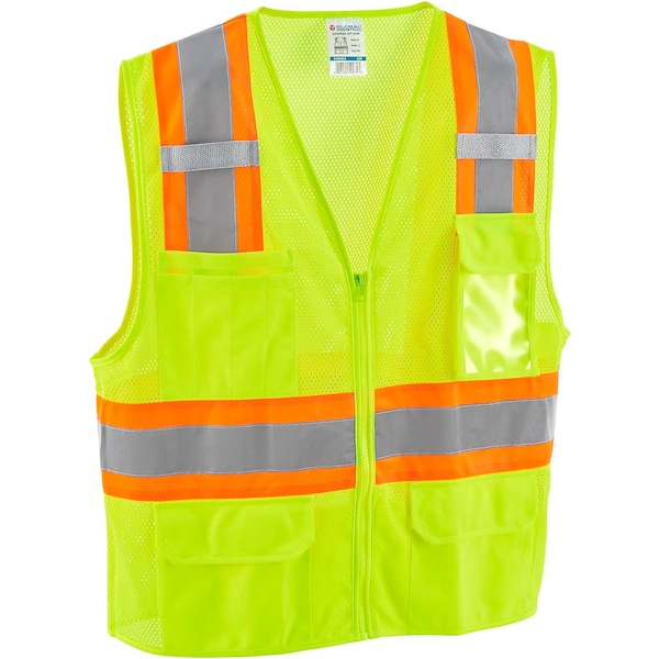 Two-Tone Safety Vest S/M Class 2 H Back, , Zipper 6 Pockets, 1 Mic Tab