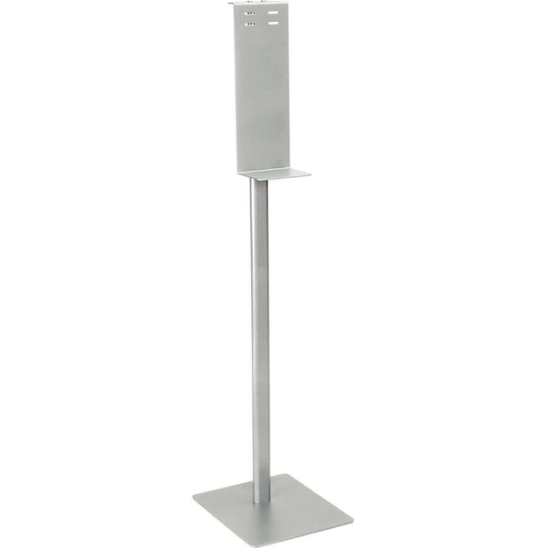 Universal Hand Sanitizer Dispenser Floor Stand is ideal for high traffic areas such as lobbies, offices, schools and other facilities where frequent hand sanitation is needed. It can be used with a variety of hand sanitizer dispensers to convert into a portable station. Durable aluminum/steel construction. Drip tray helps prevent hand sanitizer leaks on floors. Mounting plate dimensions: 6W x 16-1/4H with 1 x 4-1/2D drip tray. Dispensers can be mounted by hardware or double-sided adhesive tape mounting hardware and tape included. Sanitizer Dispenser Sold Separately. Overall assembled product dimensions: 14L x 12W x 54H.